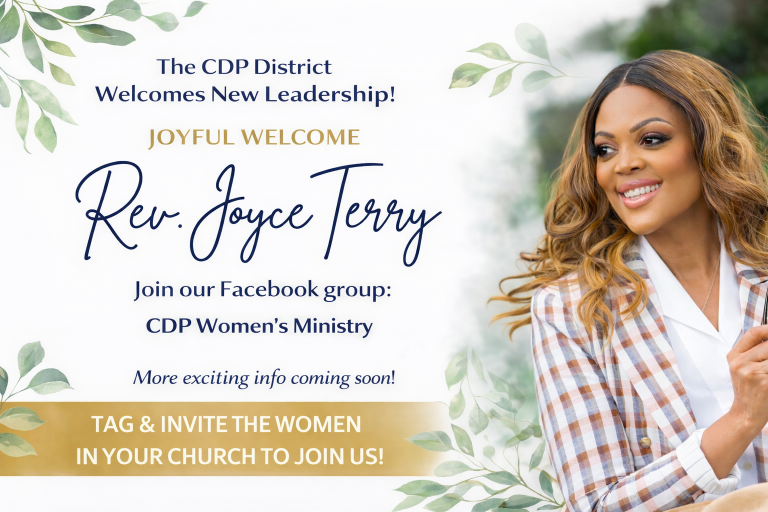 Pastor Joyce Terry is a devoted leader, teacher, and servant of God with a heart for engaging women to grow in faith, purpose, and wholeness. As the founder and CEO of Well With You, a health and wellness organization rooted in holistic care, Pastor Joyce supports individuals in nurturing their spiritual, emotional, and physical well-being. She is known for her passion for biblical teaching, spiritual formation, and guiding people through seasons of transition with clarity and hope. Her work reflects a deep commitment to integrated living – helping others understand that true wellness involves the whole person: mind, body, soul and spirit. With a loving focus on the needs of others, she brings a pastoral heart and a collaborative leadership style to every space she serves. Through teaching, mentoring, and community building, Pastor Joyce creates environments where women feel seen, supported, and equipped to walk confidently in their God-given calling. As President of the CDP Women’s Ministry, Pastor Joyce is committed to cultivating a Christ-centered, relationally strong, and purpose-driven ministry that empowers women to thrive spiritually and live well in every area.